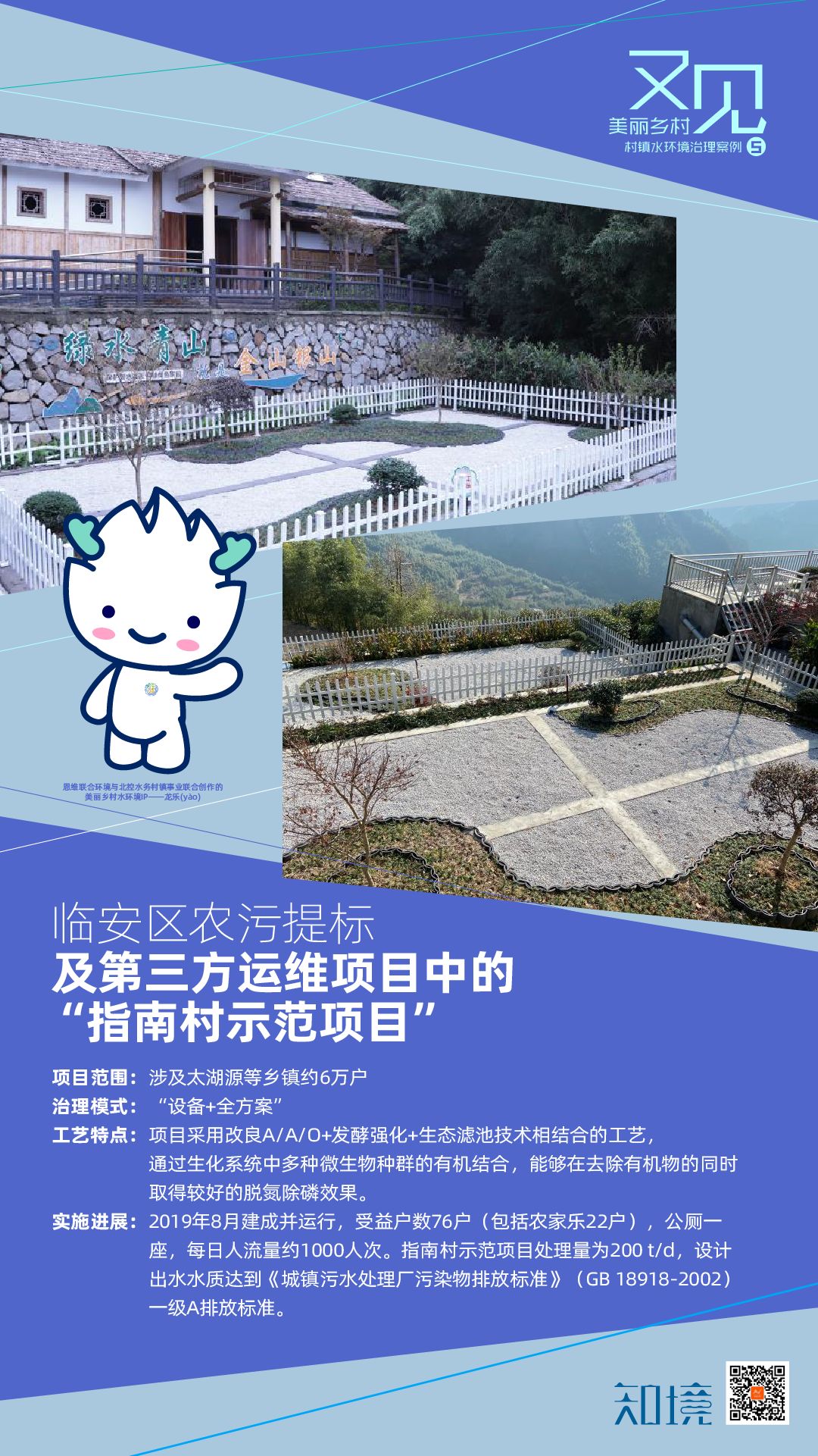 2019年,雙良商達在臨安區太湖源鎮等開始實施農村污水提標改造與第三方運維項目,為項目提供“設備+全方案”的服務,探索建設村落景區農村污水處理4.0模式,全面助力全國首個全域村落景區的創建。